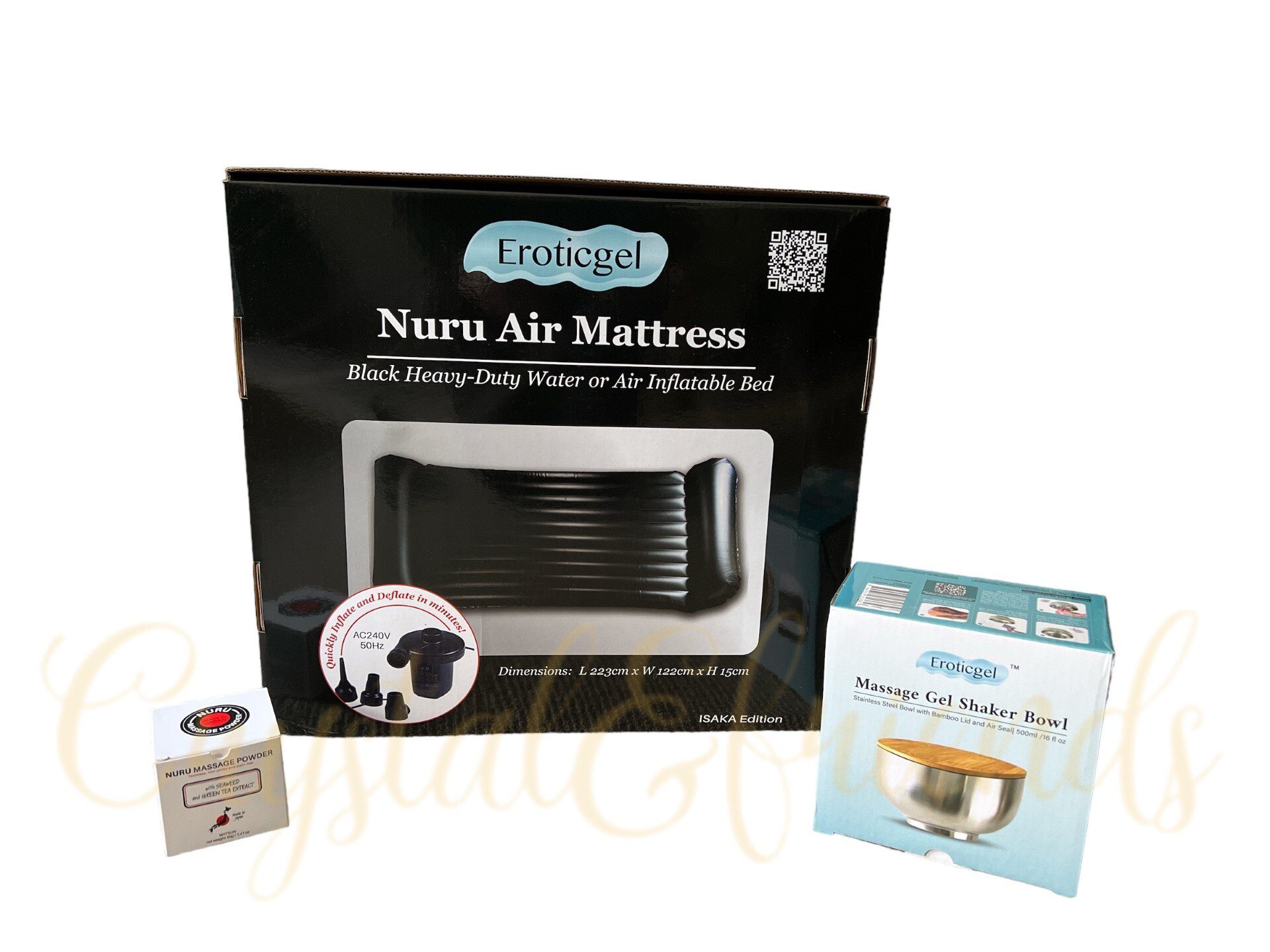 Introducing our all-inclusive Nuru Massage Bundle, featuring our Inflatable Nuru Mattress, exquisite 40g Nuru Massage Gel Powder and Shaker Bowl. Elevate your intimate moments and embark on a journey of passion, pleasure, and pure bliss.